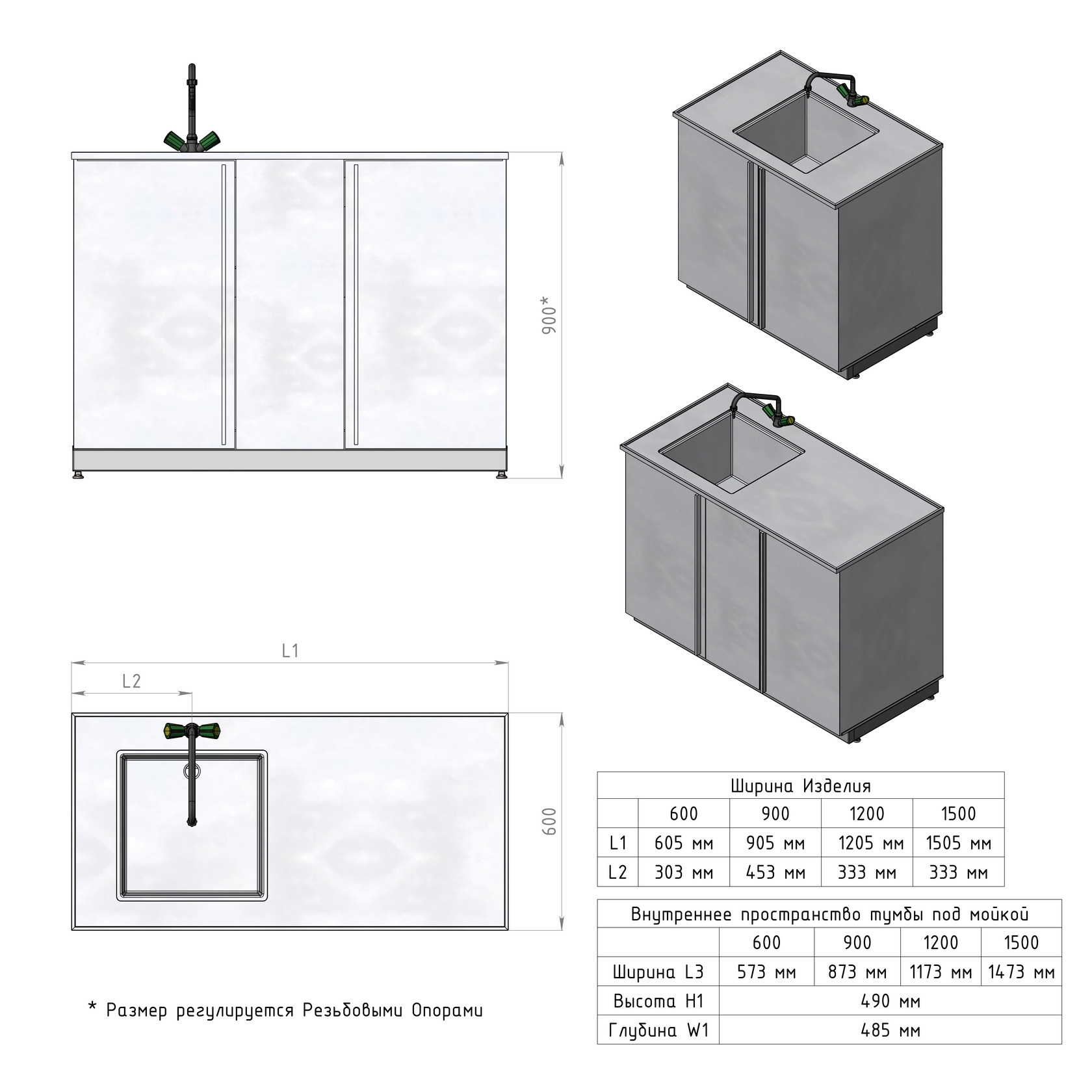 Мойка лабораторная химическая ЛК-1500 СМС-ПВ (2 раковины, 1 смеситель) для посуды устанавливается на прочный металлический сборно-разборный каркас с полимерным покрытием серого цвета.