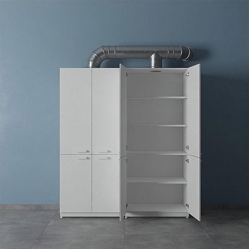 На верхней крышке шкафа предусмотрено отверстие с фланцем из оцинкованной стали для подключения к системе отвода воздуха.
