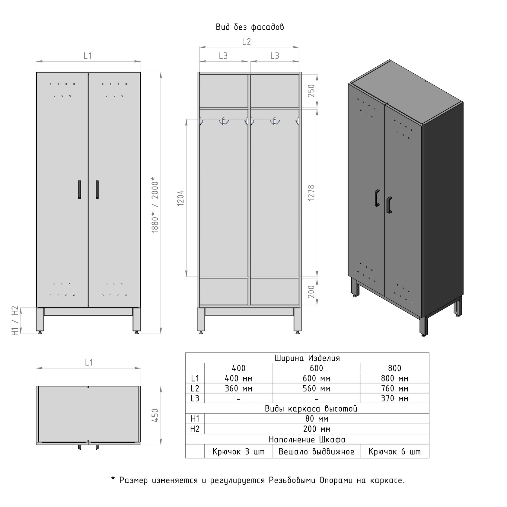 Шкаф лабораторный гардеробный имеет два варианта исполнения: