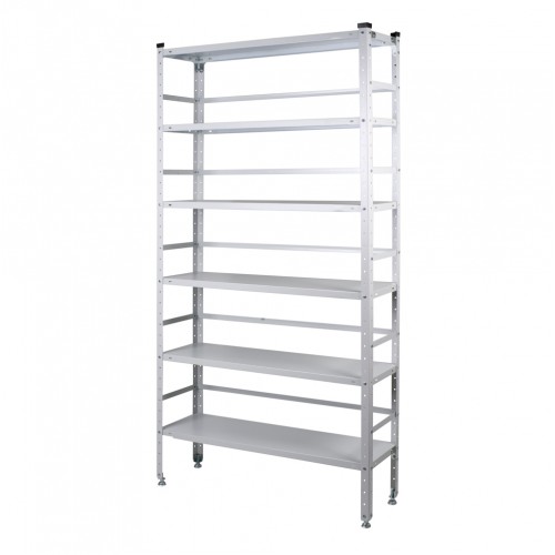 • Распределённая нагрузка на полку до 80 кг, суммарная нагрузка на стеллаж до 400 кг.