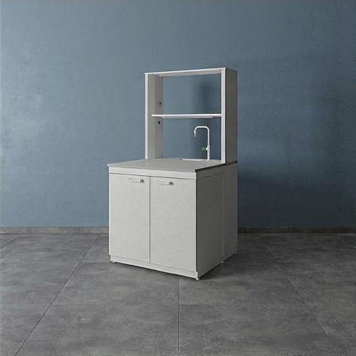 Стол лабораторный химический (с тех. приставкой) ЛК-900 СПТ дополнительно может комплектоваться различными тумбами, а также сливными раковинами, кранами для подвода воды или газа (сжатого воздуха), которые монтируются в технологическую приставку.
