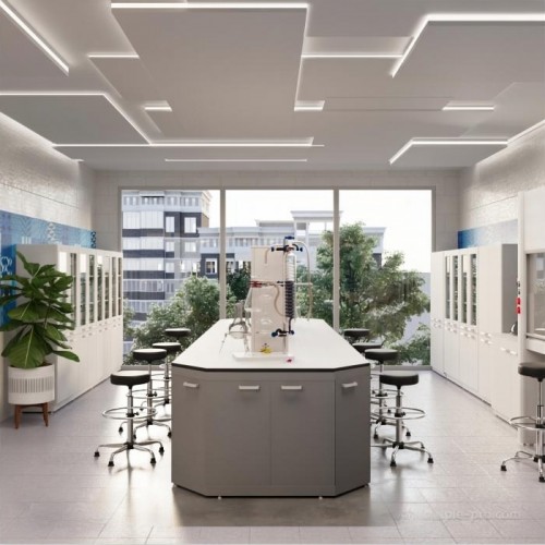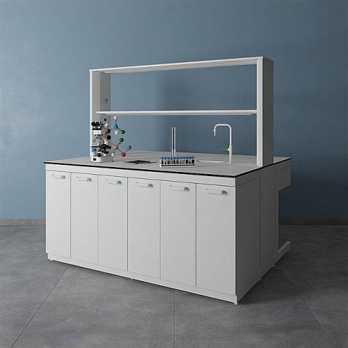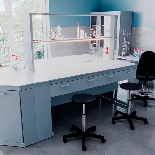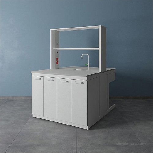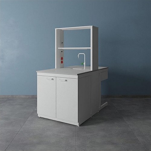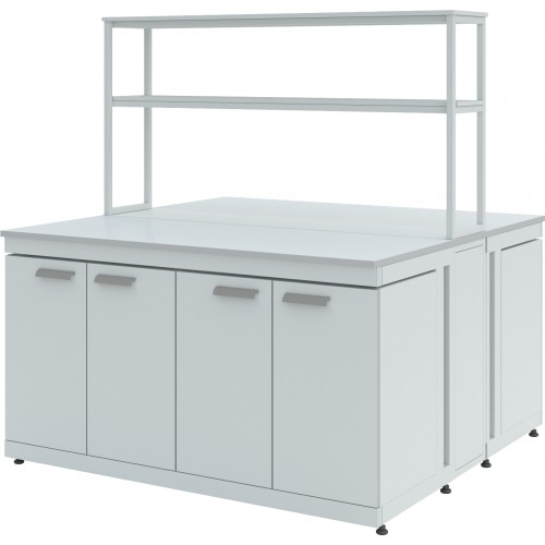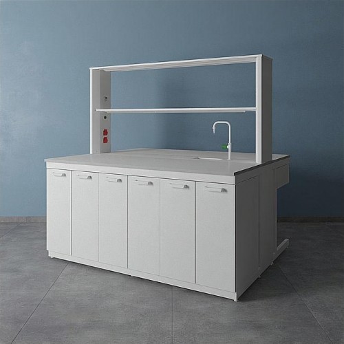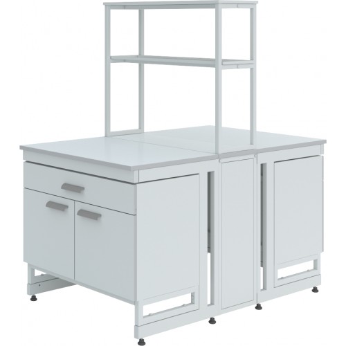 Организация работы в лаборатории предполагает максимально полное использование имеющегося пространства. Один из предметов мебели, способный стать высокофункциональным центром лаборатории – островной стол. За ним можно работать с двух сторон, решая широкий спектр задач благодаря подобранному оснащению и дополнительным опциям. Выбор материала доступен для обеих столешниц, а также для сливной раковины, устанавливаемой дополнительно.