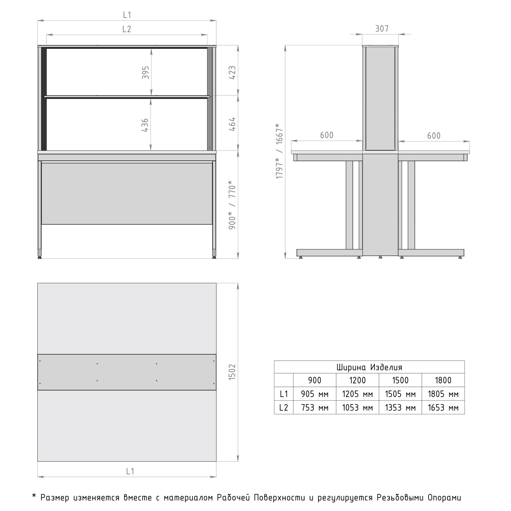 2. Рабочая поверхность – две столешницы (материал – на выбор);