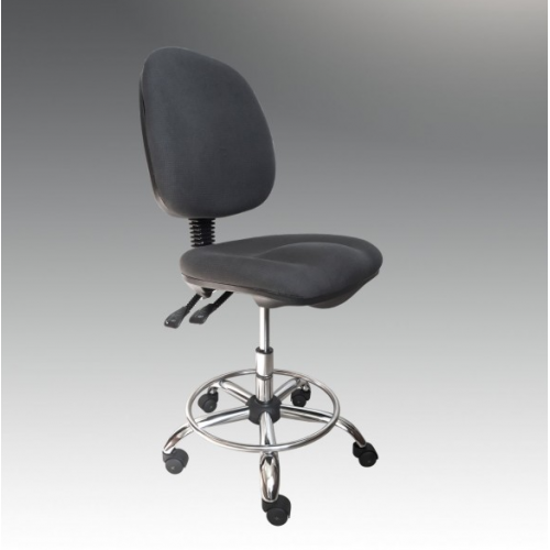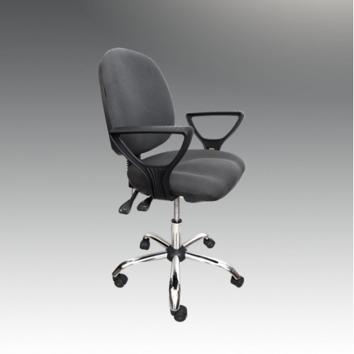 Материал сиденья и спинки лабораторного антистатического тканевого стула ESD - ткань серого цвета, позволяющий работать в условиях больших переменных нагрузок и температур.