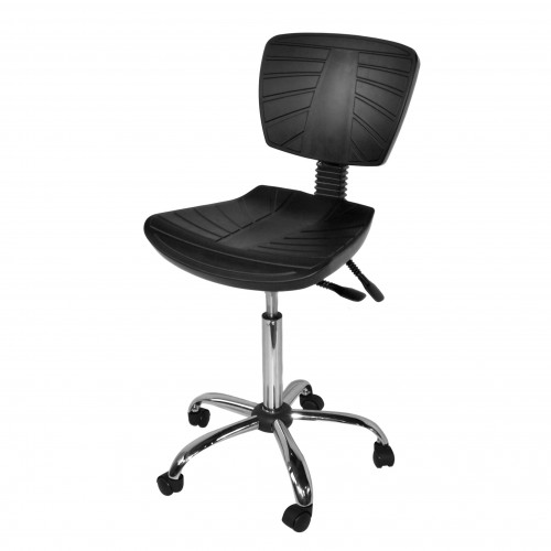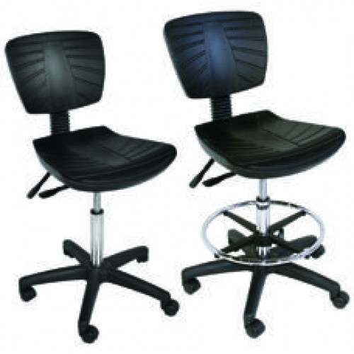 Материал сиденья и спинки лабораторного стула GEMA - мягкий литой полиуретан черного цвета, позволяющий работать в условиях больших знакопеременных нагрузок и температур.