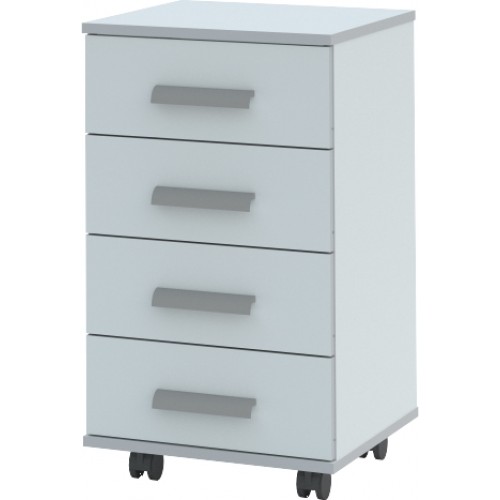 2. Лабораторная подкатная тумба ЛК-400 ТПЯ-В с четырьмя ящиками устанавливается на роликовые опоры со стопорным механизмом.