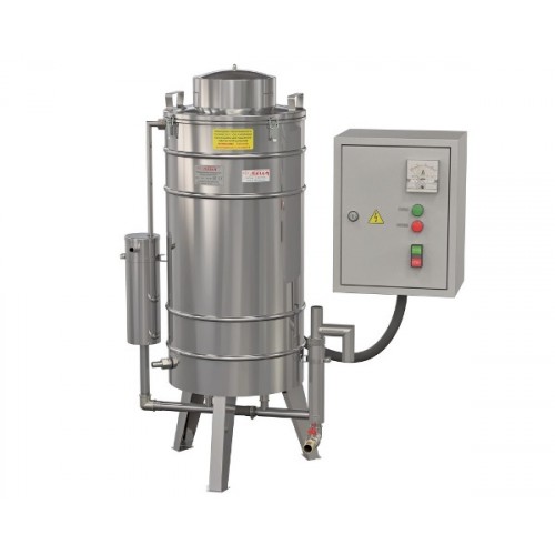 Дистиллятор оснащён датчиками контроля уровня воды, разборным конденсатором и другими устройствами повышающими качество дистиллята.