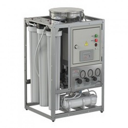 Корпус и основные детали изготовлены из высоколегированной зеркальной нержавеющей стали 12Х18Н10Т. Встроенный блок управления и охладитель для получения дистиллята с температурой не более 40°С (имеется возможность получения воды с температурой 70-85°С). Автоматическое отключение электронагревателей происходит при прекращении подачи воды и понижении уровня воды в камере испарения ниже допустимого. Система очистки воды многоступенчатая.