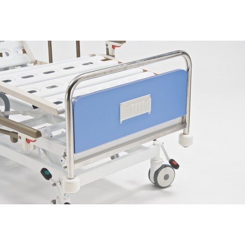 Кровать оборудована 2-мя ограждениями боковыми (рейлингами) для кровати с рычагами-клавишами для опускания.