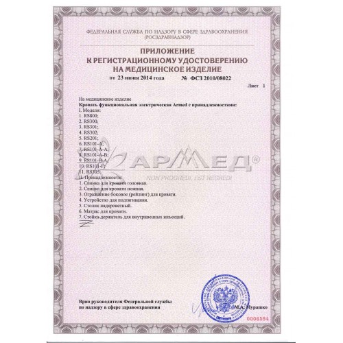 Кровать функциональная электрическая Armed с принадлежностями RS101-F, 300600014, Медицинская мебель