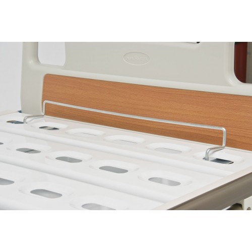 Рама кровати имеет отверстия для установки стойки-держателя для внутривенных инъекций, устройства для подтягивания и ограждений боковых (рейлингов) для кровати.