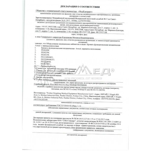 Кровать предназначена для использования как в лечебных учреждениях для ухода, диагностики и лечения пациентов под наблюдением врача, так и в домашних условиях - для профилактики и восстановления больных.