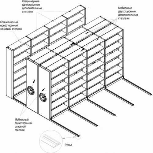 Мобильный двухсторонний стеллаж СТМ МА 3155х700х600 дополнительный
