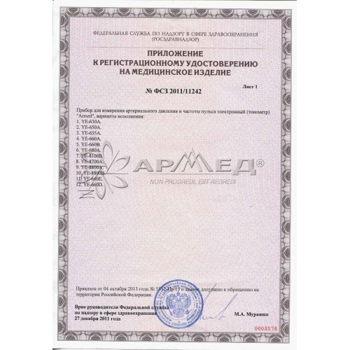 Прибор для измерения артериального давления и частоты пульса электронный (тонометр) «Armed» Мод. YE-630А - это компактный, полностью автоматический прибор с речевым выходом для измерения артериального давления , работающий на основе осциллометрического метода.