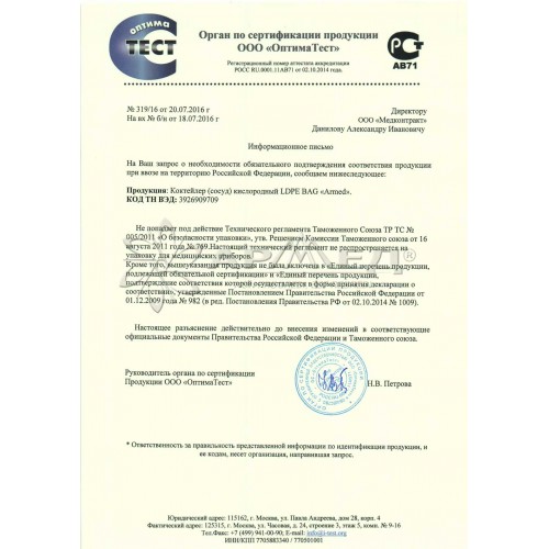 Коктейлер (сосуд) кислородный LDPE BAG Армед (Armed), 100102001, Медицинское оборудование и сопутствующие товары