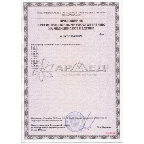Концентратор кислорода «Armed» 7F-5L предназначен для проведения кислородной (кислородно-воздушной) терапии.