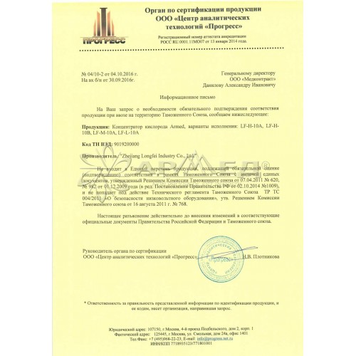 * Во избежание выхода из строя прибора, связанного с перебоями напряжения в электросети, кислородный концентратор LF-H-10A  поставляется со стабилизатором напряжения (в стоимость не включен).