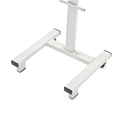 Основание стойки оснащено 2 колесами и 2 стационарными опорами для удобства перемещения и фиксации положения