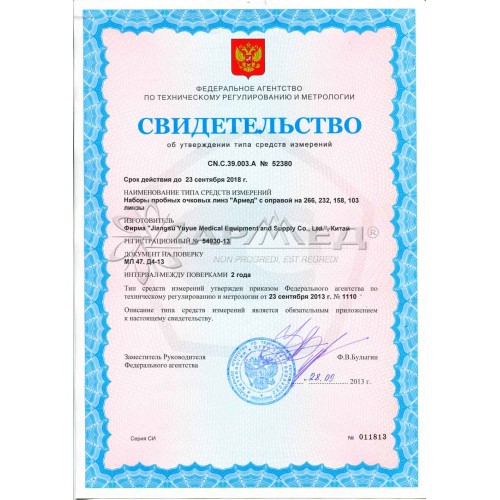 Доступен также вариант с поверкой - НАБОР ПРОБНЫХ ОЧКОВЫХ ЛИНЗ "ARMED" № 1 с оправой на 103 линз (металл с поверкой) - 42 900 руб.