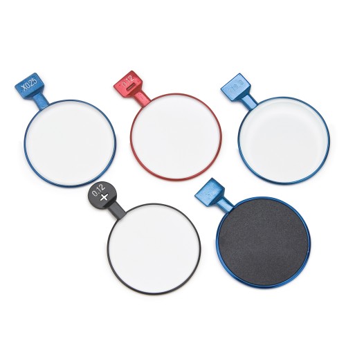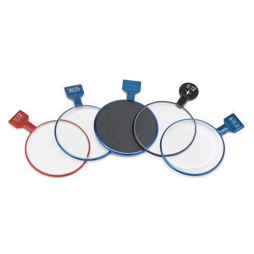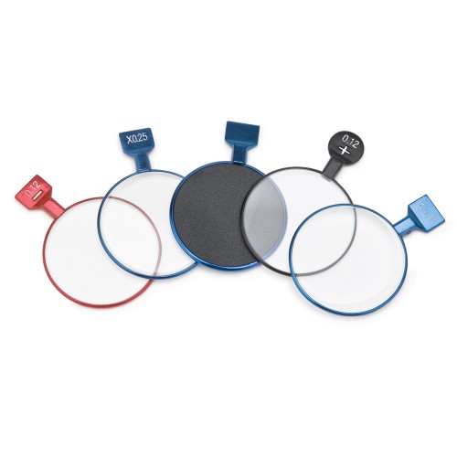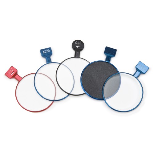 Вспомогательный линзы используются для дополнительного исследования зрения (окклюдер, точечная диафраагма, щелевая диафрагма, красный светофильтр, зеленый светофильтр, матовая пластина, maddox цилиндр, плоскопараллельная пластина, нейтральный светофильтр, скрещенный цилиндр).