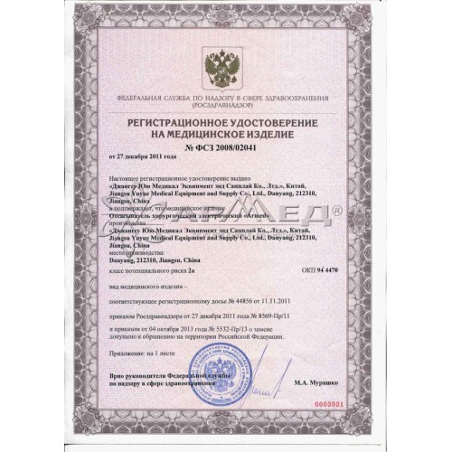 ОТСАСЫВАТЕЛЬ медицинский 7E-B "Armed"  предназначен для отсасывания различных жикостей, тканей и газов из ран и других полостей во время и после операций и в других необходимых случаях.