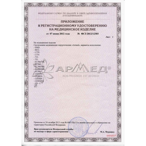 Светильник диагностический хирургический «Armed»: ZMD предназначен для освещения рабочего поля при проведении хирургических операций,