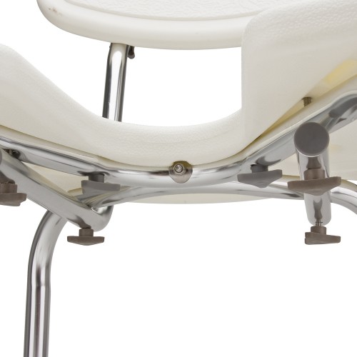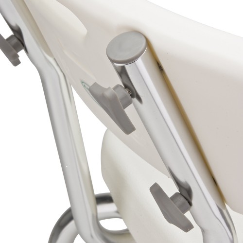 Изделие оснащено сиденьем, в котором предусмотрено отверстие для стекания и воды и выемка для проведения санитарно-гигиеническихз процедур. Спинка вогнутой формы, имеет отверстие для переноски. Высота сиденья регулируется с помощью кнопочного фиксатора (8 уровней регулировки высоты через каждые 25 мм).