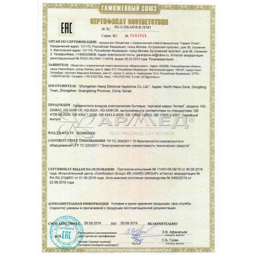 Увлажнитель воздуха электрический торговой марки "Armed" HQ-UH811A воздуха