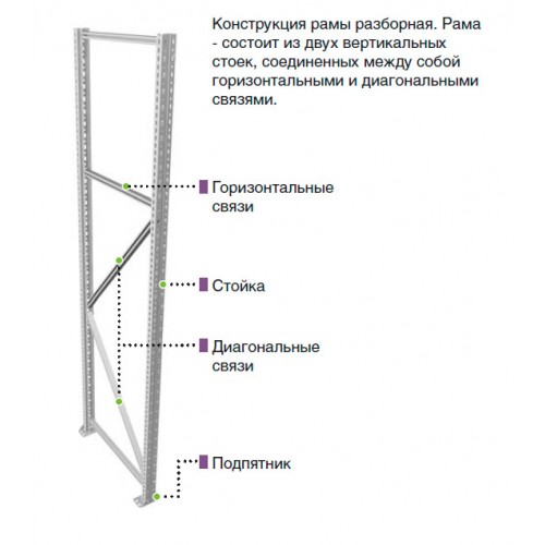 Рама разборная. Укомплектована подпятником (с комплектом крепежа), горизонтальными и диагональными связями. Без анкеров.