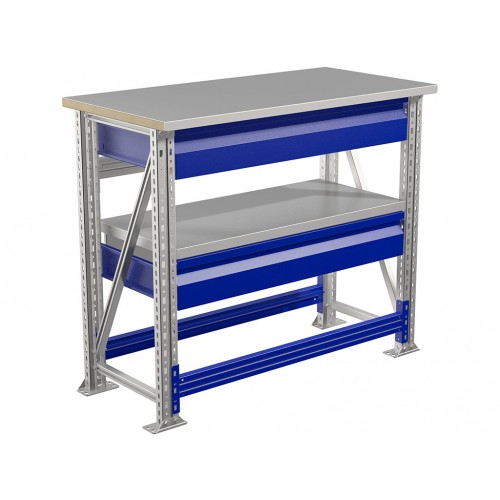 Возможность дополнить верстак полкой и выдвижным ящиком с нагрузкой 100 кг.