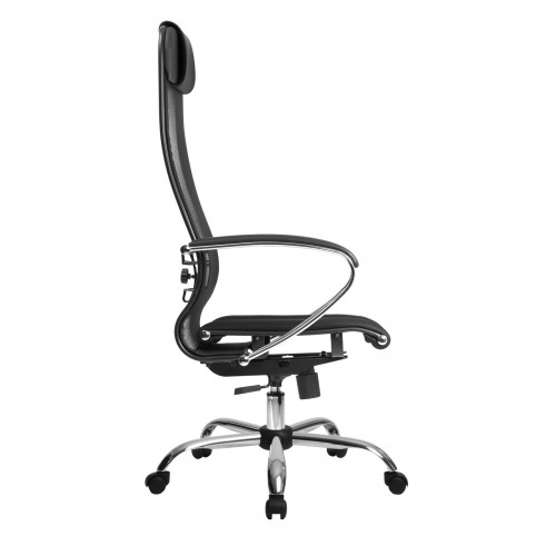 - высокая замкнутая сверху спинка кресла с мягким накладным подголовником;