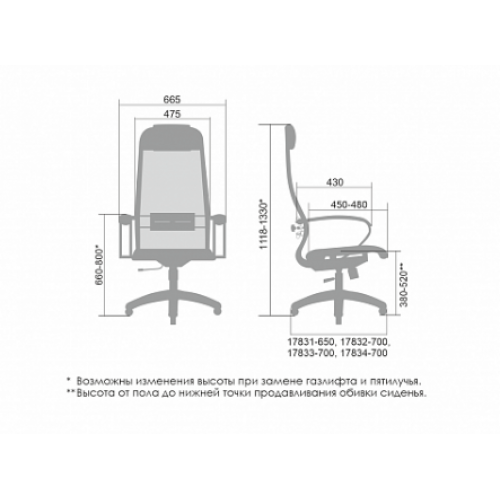 ** Высота сиденья в верхнем и нижнем положении может быть изменена, в зависимости от модели применяемого газ-лифта.