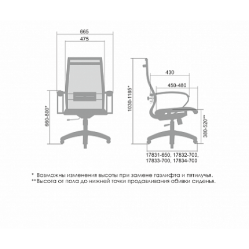 Сиденье: на стальном каркасе с черным полимерным покрытием, ширина 475 мм;