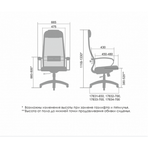 ** Высота сиденья в верхнем и нижнем положении может быть изменена, в зависимости от модели применяемого газ-лифта.