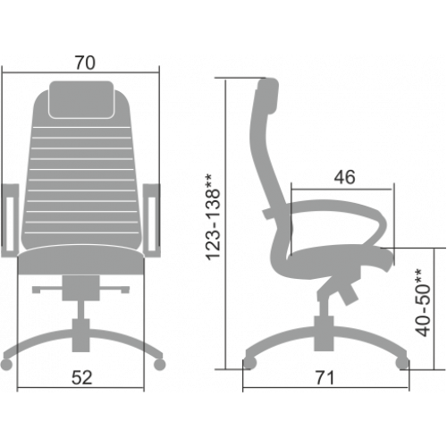 **Высота сиденья в верхнем и нижнем положении может быть изменена, в зависимости от модели применяемого газ-лифта.