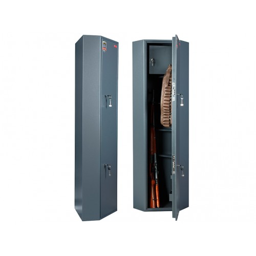 • толщина металла корпуса и двери – 2 мм оборудованы патронным отделением, запирающимся на ключ, полками и ложементами для ружей