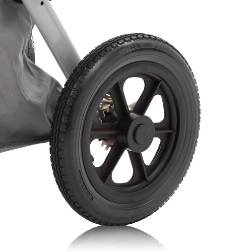 Кресло-коляска оснащена колесами, имеющими задние и передние цельнолитые шины.