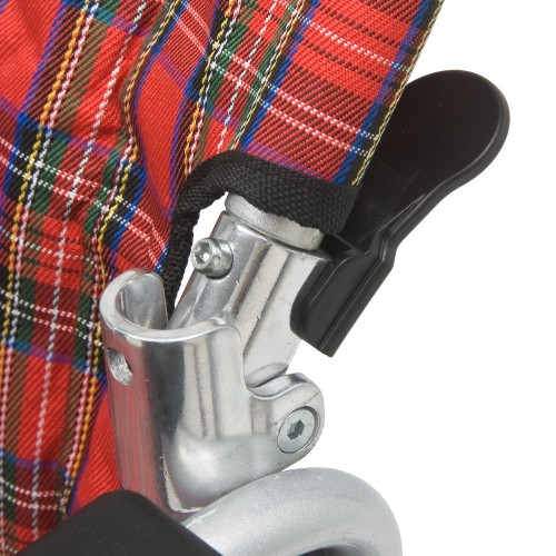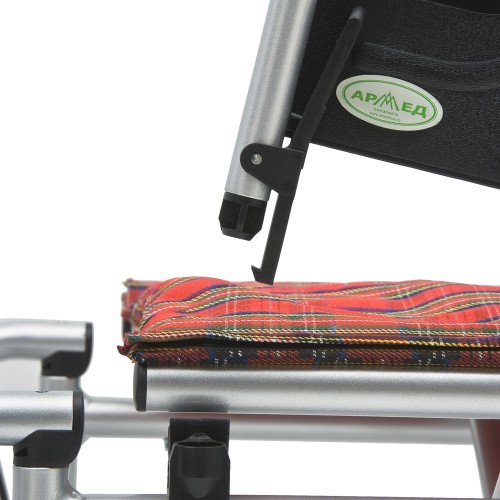 Кресло-коляска оснащена откидными подлокотниками с пластиковыми накладками.