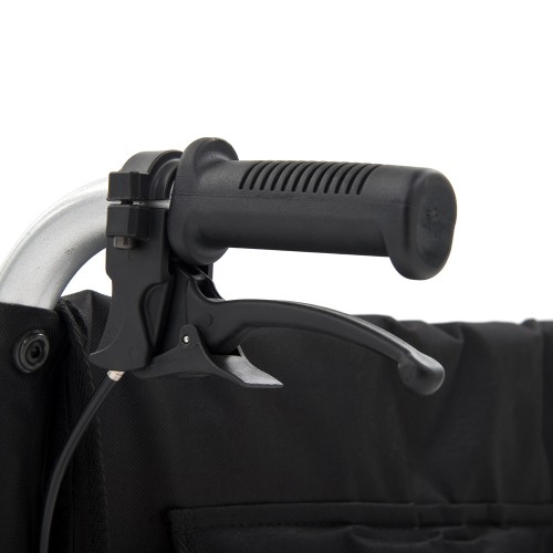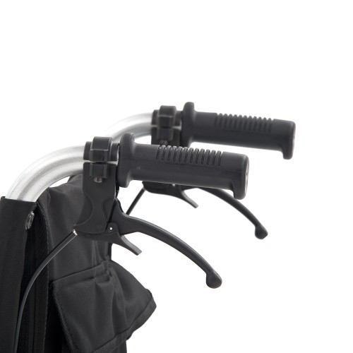 Дополнительно кресло-коляска оснащена ручными тормозами, находящимися на ручках управления.
