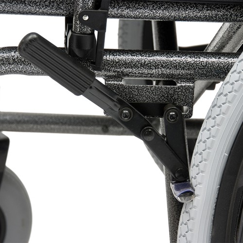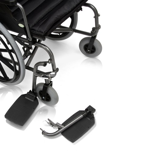 Кресло-коляска оснащена съемными, поворотными, регулируемыми по высоте подножками, оборудованными мягким упором для голени.